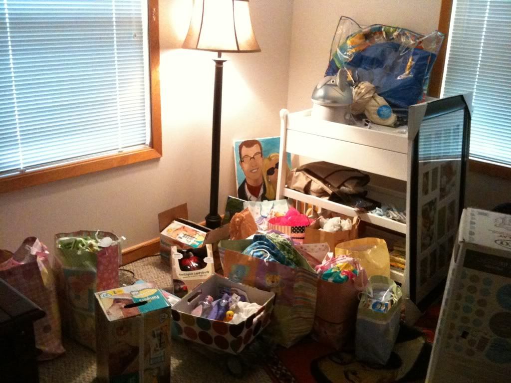 That weekend my mom hosted a baby shower for me. The shower went great except for the moment when I sat down to open up presents. My mom scooted a chair out in the middle, everyone was staring at me and as I was preparing to open a gift I realized I had to pee. Which happens to me about every 30 minutes. I can't even be shy about it anymore. I had to announce to a room full of people, "Thank you for your attention, but I have to go to the bathroom. So sit tight, and I'll be right back."